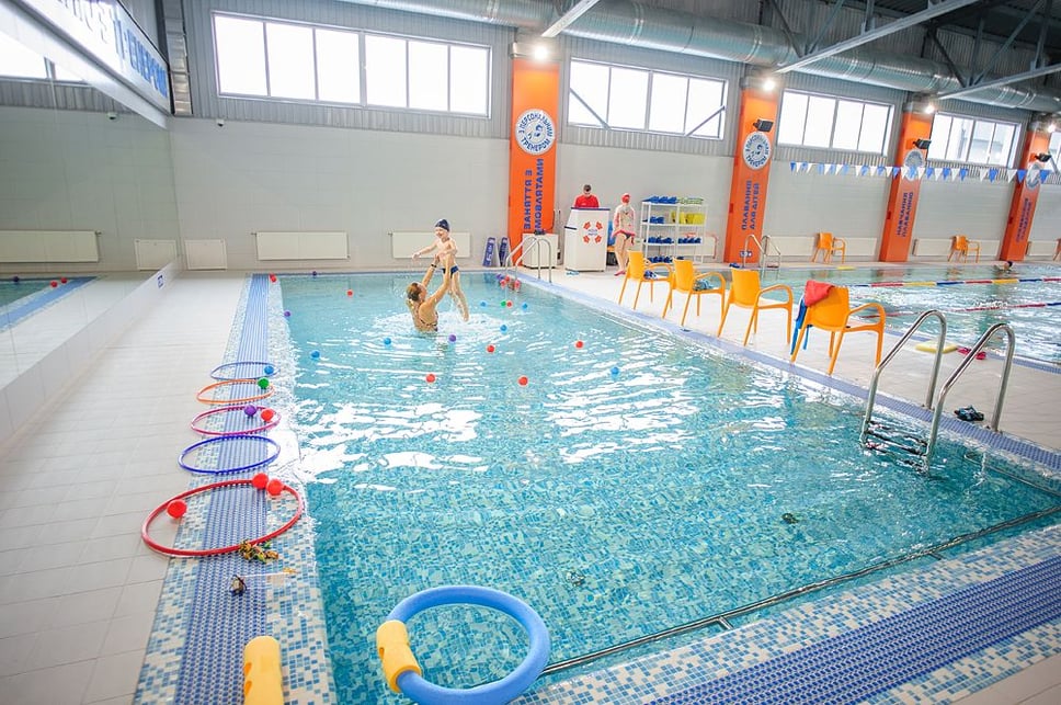 - **Температура. **Тепла вода — основа комфорту під час плавання. Ми дотримуємося балансу оптимальної температури води та повітря, щоб діти не відчували перепаду температур й могли вільно, розслаблено займатися протягом усього часу тренування.