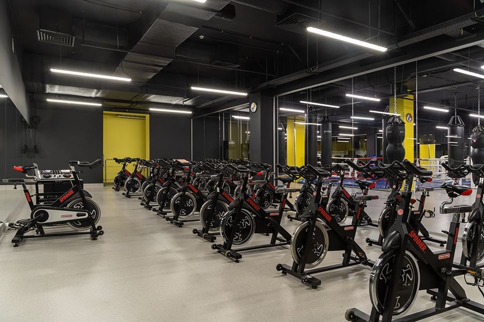 Тренування проходять на спін байках - це спеціалізовані велотренажери, розроблені з урахуванням особливостей велоспорту. Вони імітують їзду на шосейному велосипеді в реальних умовах. Регульоване сидіння і кермо дають змогу налаштувати положення для зручності та ефективності тренувань. Спін байк оснащений датчиками і дисплеєм для відображення інформації про швидкість, час, дистанцію, пульс, спалені калорії.
