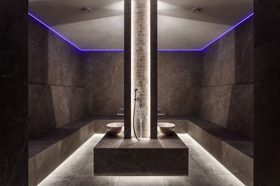 - Теплі стіни та лави. У термах лазнях прогрівається не тільки повітря, а й лави, спинки, стіни. Тепло огортає і розслабляє, створюючи відчуття справжнього затишку і безпеки. Температура повітря підтримується на рівні 45-60°С, а вологість на рівні 100%. Клуби пари в лазнях-термах обволікають і огортають, змушуючи тривожні думки випаруватися, а тіло повністю зануритися в безтурботність.